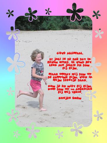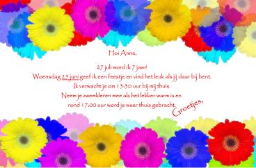 Uitnodigingen voor een kinderfeestje. En –ook met bloemetjes- weer een heel andere lay-out voor het familie-feestje.
