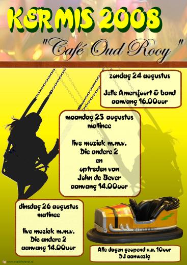 Kermis bij Café Oud Rooy. Binnen in het café en buiten op het terras was deze poster A0 opgehangen.